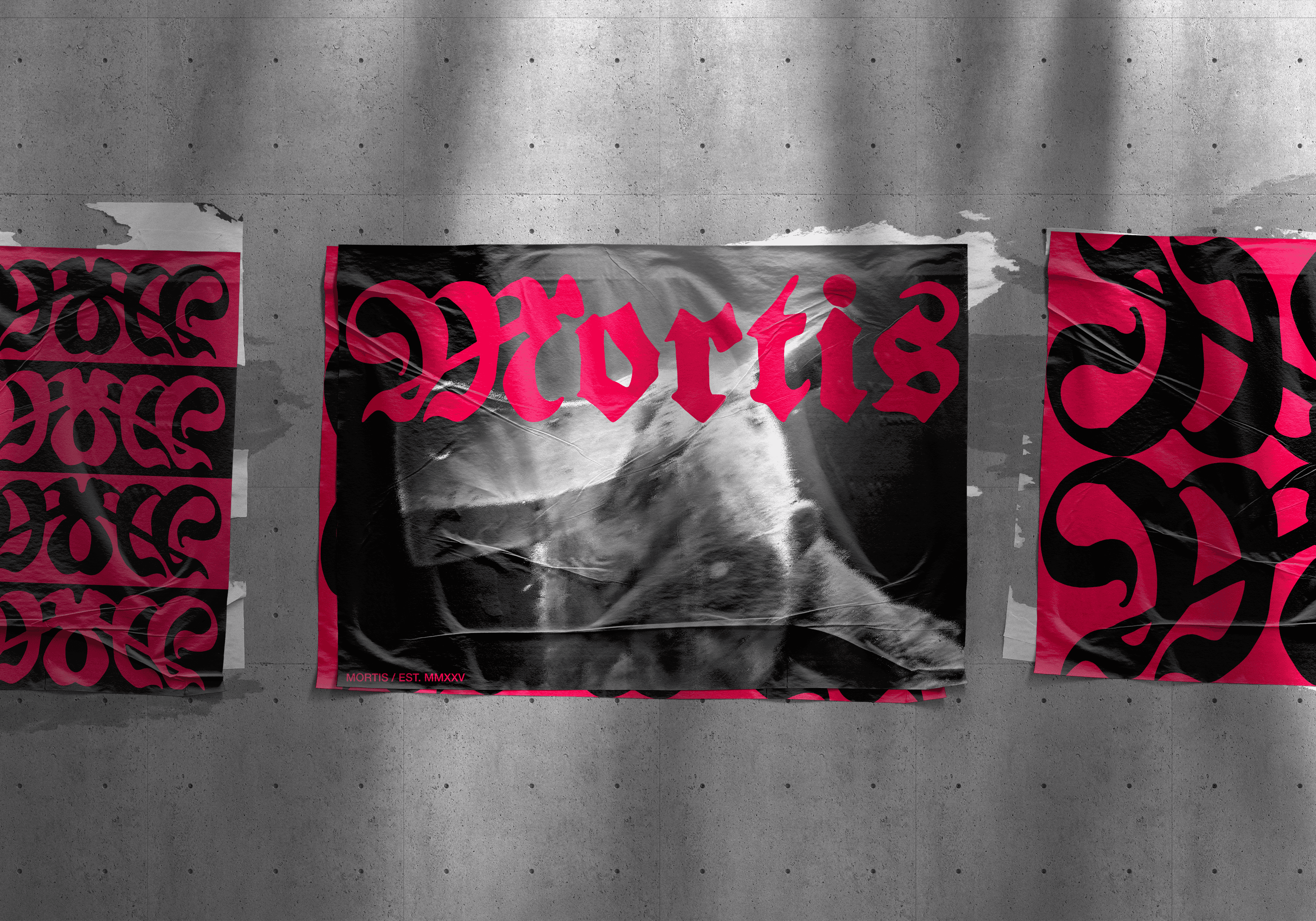 Mortis is a conceptual branding project for a fictional body modification service designed for zombies. The brand explores a dark, experimental aesthetic while building a structured identity system that defines the tone, visual language, and services offered. The project includes visual assets and branded applications that bring the concept to life through a cohesive and immersive identity.